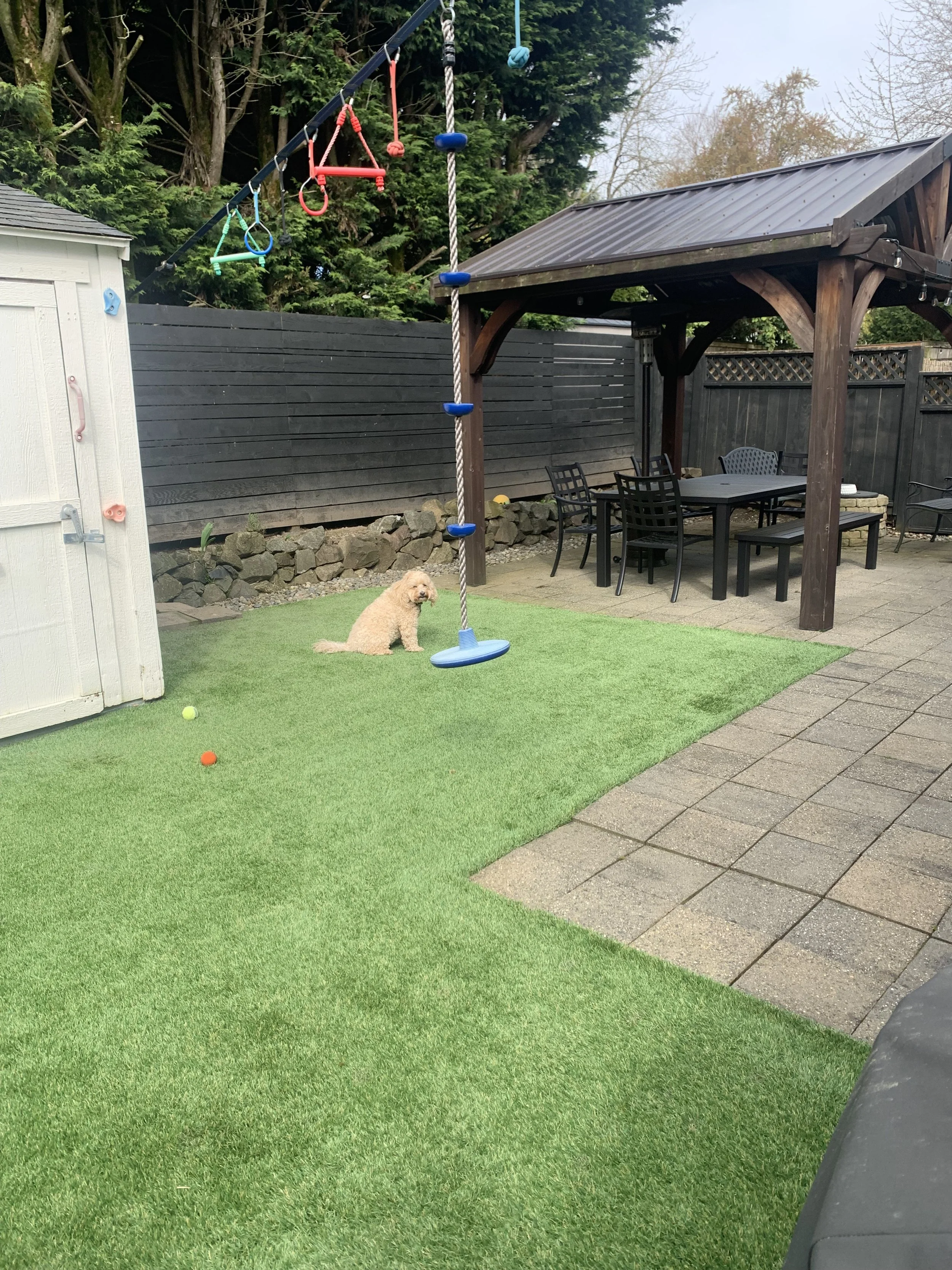 Designed for effortless entertaining, this modern backyard features a sleek flagstone patio, inviting firepit, and a vibrant, low-maintenance garden, creating the perfect outdoor escape for the family.